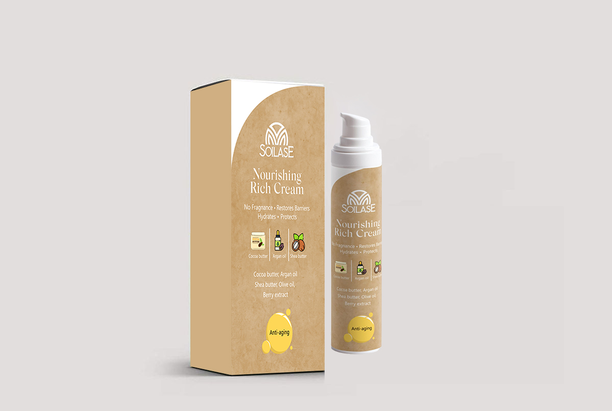 The Soilase Nourishing Rich Cream provides intense hydration without heaviness. Formulated with natural ingredients, the rich texture absorbs smoothly, helping soothe dryness and keep skin balanced, hydrated, and comfortable all day.